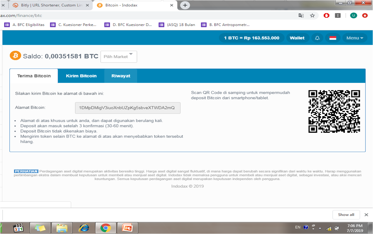 4. nanti pilih "klik untuk membuat alamat bitcoin", nanti muncul rekening bitcoin kaya gini