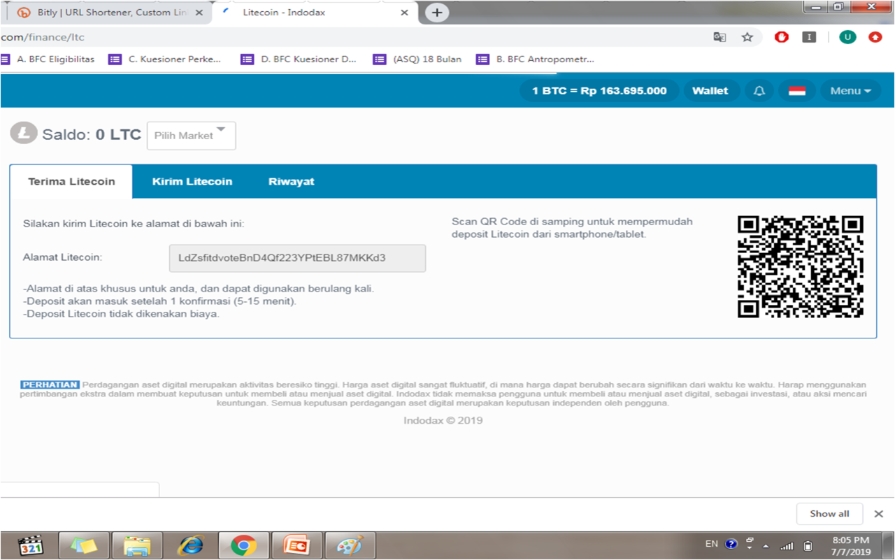 4. nanti pilih "klik untuk membuat alamat litecoin", nanti muncul rekening litecoin kaya gini